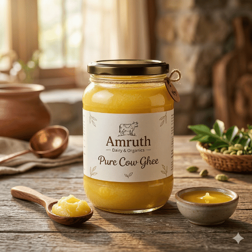 Traditional ghee prepared from pure cow milk, rich in aroma and crafted using time-honored methods.